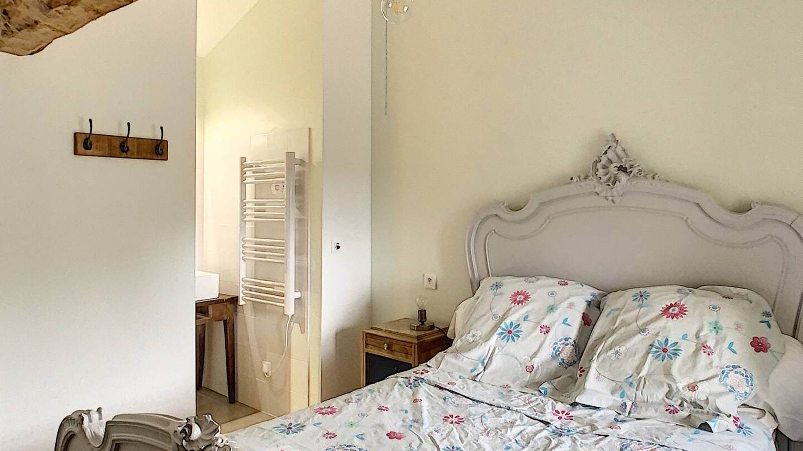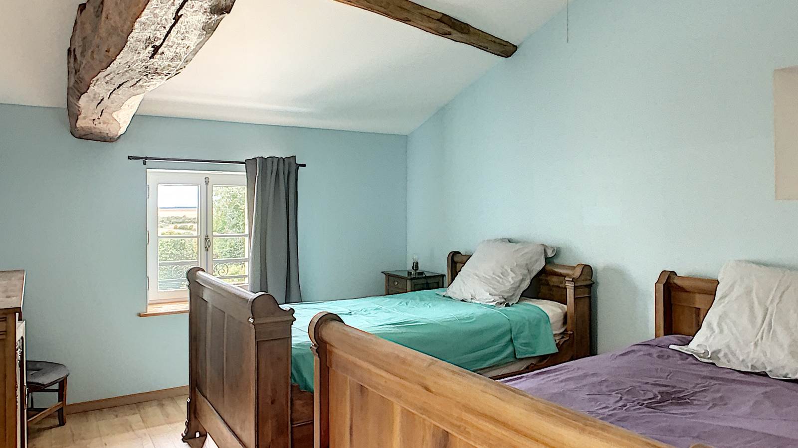 A l'étage : 4 chambres (dont 3 avec lit de 2 personnes et 1 avec 2 lits d'une personne) avec salle d'eau privative (douche et lavabo) dans chacune d'elle. 2 WC.